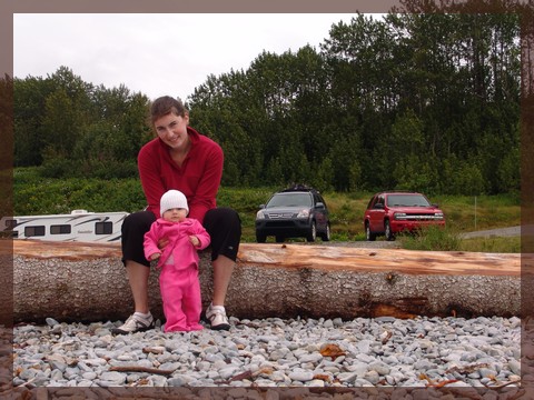 Moi et maman dans notre premier cmaping à Ste-Anne des monts. Beau camping près de l'eau en passant (l'ancre jaune)